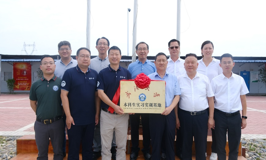 学院副院长严鹏教授介绍了我院的基本情况和学生开展实习实训的情况,对公司为学生提供实习实践机会表示感谢。希望进一步深化合作,为企业高质量发展和高校人才培养做出贡献。随后在项目驻地举行了本科生实习实训基地揭牌仪式。学院党委副书记张栋梁、汉江国投党委副书记、董事黄开均共同为基地揭牌。