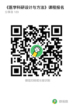 《医学科研设计与方法》课程将于5月16日(周四)上午上课,请参加会议的同学提前十分钟签到入场(需提前扫描下方二维码报名,报名截止日期为5月13日),具体安排如下:
