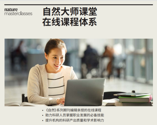 是依托于《自然》丰富的学术出版经验而开发的专业科研培训在线课程,主要由《自然》系列期刊编辑、国际知名学府教授、顶尖研究机构的科学家、资助机构及产业界人士等亲授的预录制课程组成,为处于事业不同阶段的科研人员提供权威期刊编辑和资深研究人员的直接指导,助力学生及科研人员掌握职业发展必备的技能。