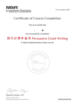 学习证书 | 1份(《自然》总编辑Magdalena Skipper签发) |
