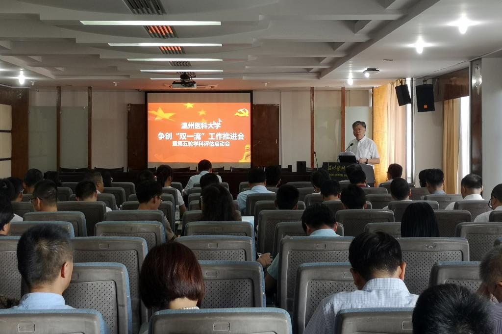 会上,李校堃校长作了《以评促建 争创一流 全力做好第五轮学科评估工作》的动员讲话。他指出全国学科评估对学校优化学科和学位点布局,提升学科整体发展水平和学校声誉有着至关重要的影响。他强调,争创“双一流”是当代温医大人的使命与担当,要以本次学科评估作为争创“双一流”的重要契机,力争在评估中取得历史性突破。他结合学校实际情况对学科评估工作提出六点具体要求:一是要牢固树立大局意识,强化责任意识和担当意识,研究好策略,精准发力;二是各参评单位必须全力做好学科评估组织与协调工作;三是各相关职能部门为各学科提供精准服务;四是学科评估各项任务要明确到人到点;五是要广泛调动教职员工参与学科评估的积极性;六是要以评促建,通过学科评估盘清家底、补足短板,努力打造特色一流。