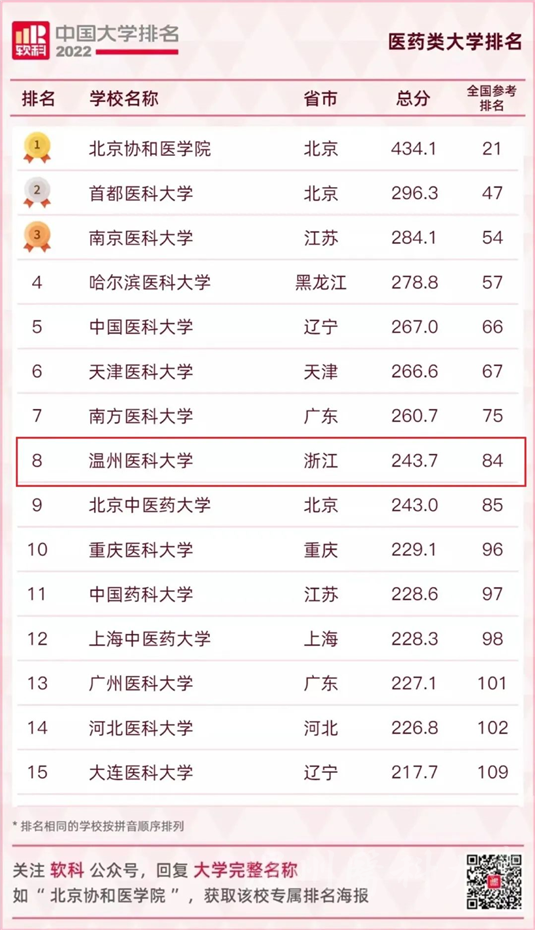 4月19日,高等教育专业评价机构软科正式发布“2022软科中国医药类大学”榜单。51视频首次进入2022软科中国医药类大学排名前10,位列第8位,较去年提升3位。本次共有85所高校上榜。