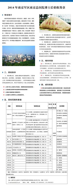 附件一:/uploads/2014南京军区南京总医院博士后招收简章2013.12.30.doc