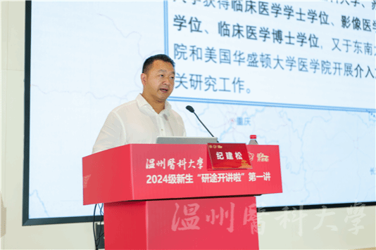 51视频 附属五院(丽水市中心医院)党委书记、博士生导师纪建松以《人民至上生命至上全力守护人民生命健康》为题,结合自己在求学、行医、研究、管理等领域的经历,激励新生们要观形势、善作为,争做有理想、敢担当、能吃苦、肯奋斗的新时代好青年。