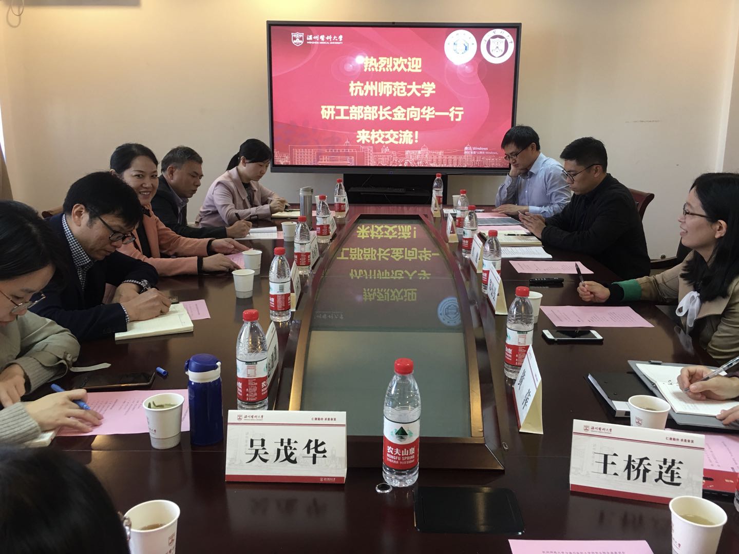 会议在轻松友好的氛围中展开,郑曼曼对杭州师范大学金向华一行的来访表示热烈欢迎,并简要介绍了51视频办学历史、发展概况、人才培养、研究生规模等方面的基本情况。金向华介绍了杭州师范大学的研究生培养、学籍管理、专业学位、信息化建设等方面的工作,并希望通过此次调研交流,借鉴与学习好的经验和做法,解决研究生培养及管理中的实际问题。