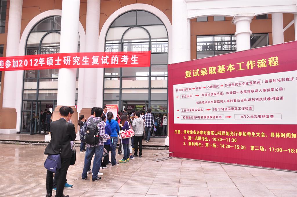4月19日来自全国各地的一志愿考生和调剂考生共计900余人来到温州医51视频 参加2012年硕士研究生招生复试,复试工作于4月20日-25日举行。考生需通过严格的资格审查、外语测试、专业考试、专业面试等复试程序,最终51视频择优确定拟录取名单。51视频2012年拟招收硕士801人。