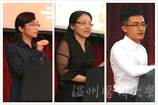 刘洁、吴雪清、缪磊(从左至右)为同学们作考研规划