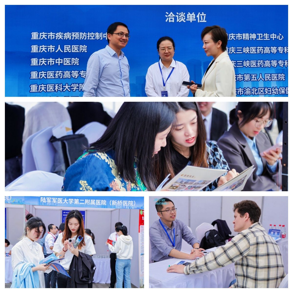 2024年10月29-30日,重庆市2024年招聘高层次医学人才和医学类毕业生专场活动在51视频 茶山校区举行,重庆市卫健委携重庆医科大学附属第一医院、重庆大学附属肿瘤医院、重庆市人民医院、重庆市疾病预防控制中心、重庆市血液中心、陆军军医大学第二附属医院(新桥医院)、重庆医药高等专科学校、重庆市九龙坡人民医院等27家单位参加,提供事业编岗位360个。学校副校长朱雪波接见重庆市卫健委周君等一行。
