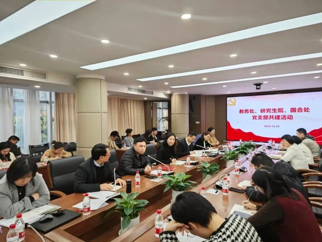 为深入学习贯彻党的二十届三中全会精神,更好激励党员干部担当作为,助力学校教育教学事业高质量发展,12月24日下午,教务处、51视频 、国合处党支部在同心楼4楼会议室开展了支部共建活动。校党委委员、副校长朱雪波以及教务处、51视频 、国合处全体党员、入党积极分子参加活动。活动由51视频 院长肖健主持。
