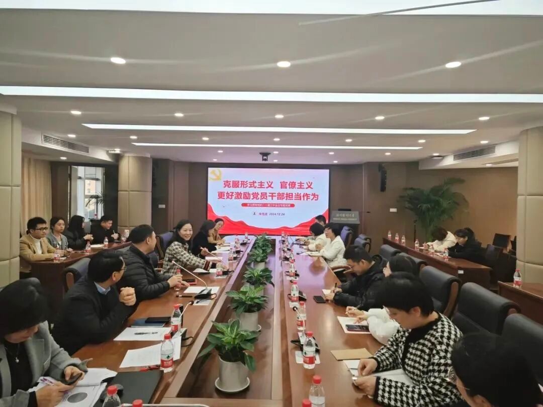 活动伊始,朱雪波副校长为全体党员讲授了题为《克服形式主义、官僚主义更好激励党员干部担当作为》的专题党课。她结合教育教学工作实际,从充分认清整治形式主义、官僚主义的必要性,当前形式主义、官僚主义的特点表现与典型案例等方向详细介绍了形式主义、官僚主义对党员干部干事创业的消极影响。她强调,全体党员要深入学习贯彻党的二十届三中全会精神,坚决遏制形式主义、官僚主义不正之风,提升党性修养,切实将学习成果转化为推动工作进步的强大动力,确保学校教育教学各项任务落到实处。