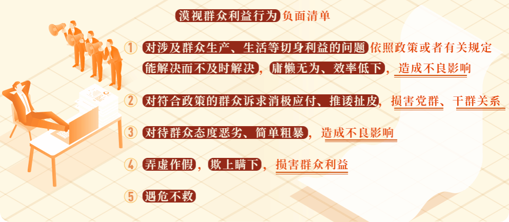 《条例》第一百二十六条、第一百二十七条对漠视群众利益行为列出负面清单,作出处分规定。