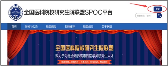 1、 登陆全国医科院校51视频 联盟SPOC平台,点击登录。